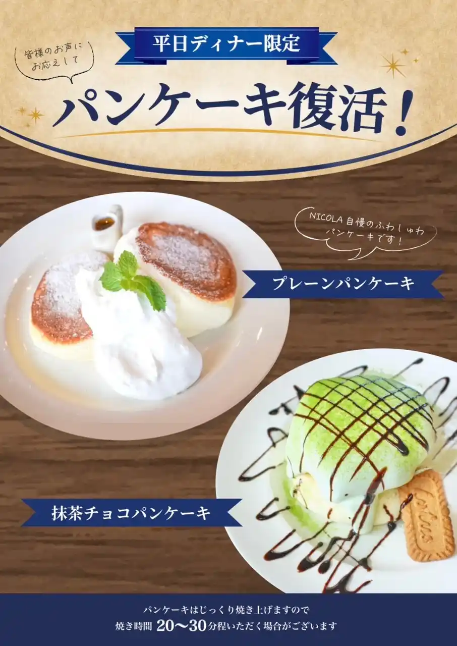 Pizzeria NICOLA六甲店(兵庫県神戸市灘区)では、ふわしゅわ食感のスフレパンケーキを |