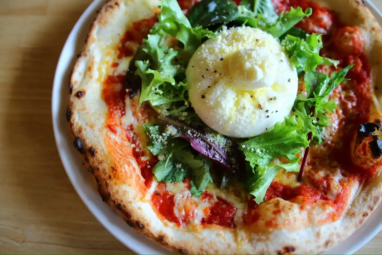 自家製ブッラータチーズのトマトピザ |