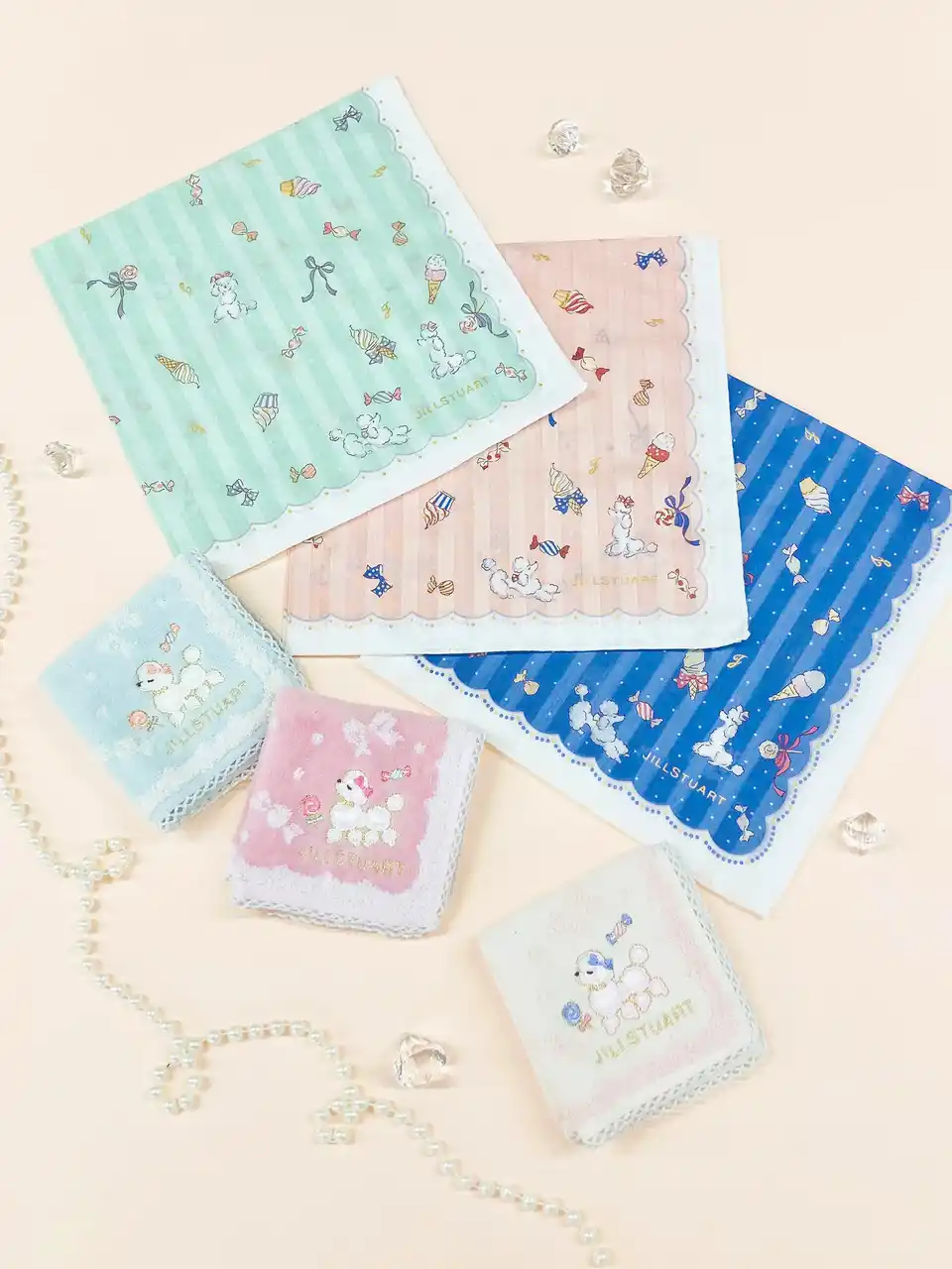 | ケーキやパフェ、アイスクリームなどのスイーツを集めたデザインは、持つだけでハッピーな気分に。甘く華やかな新作ハンカチの登場です。 | |||||||||