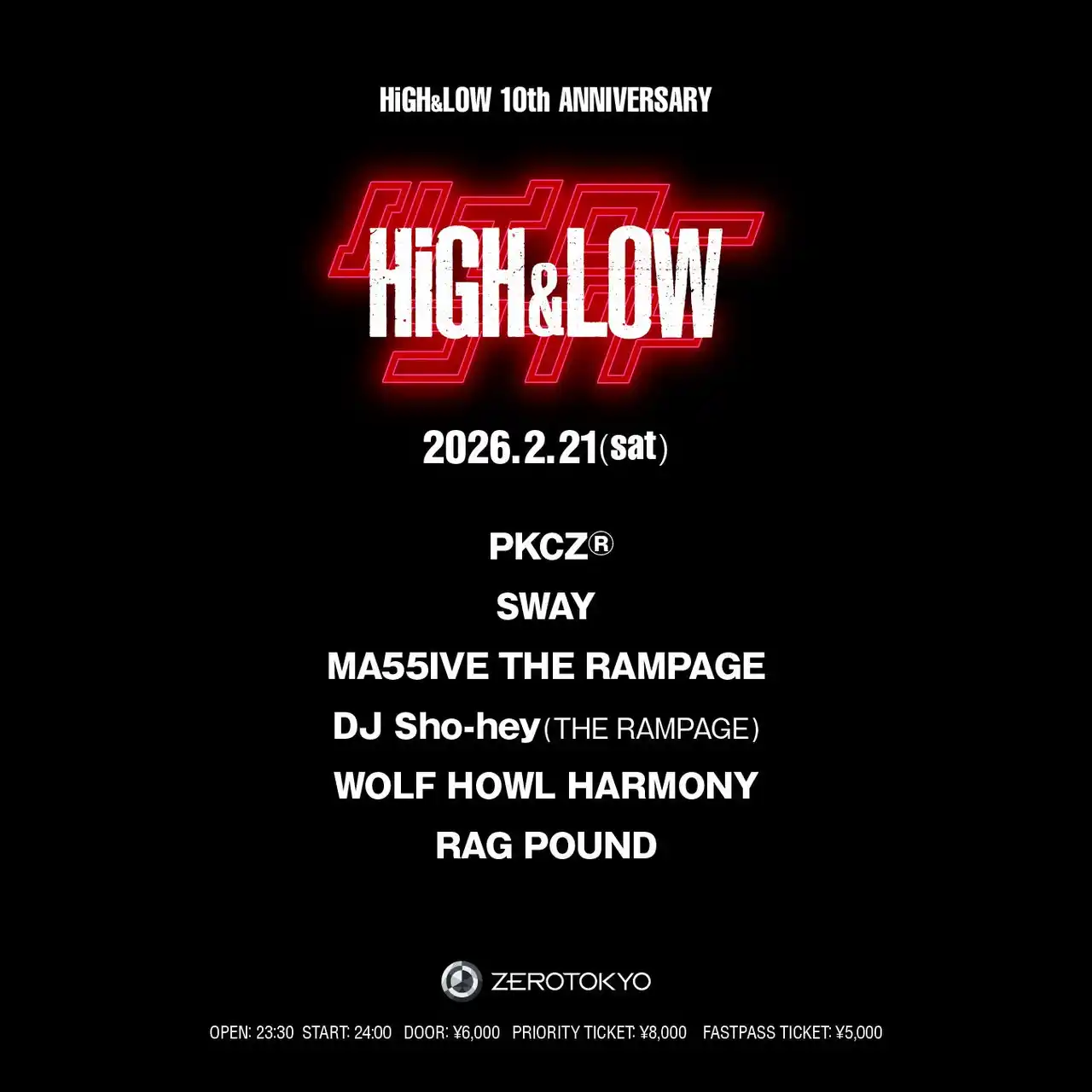 2026.2.21(土) ハイローナイト ~HiGH&LOW 10th ANNIVERSARY~ |