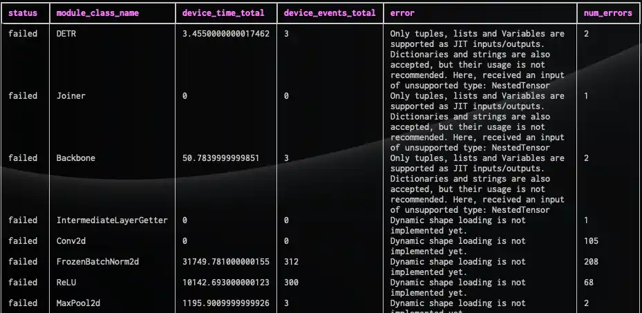 変換結果の可視化:AIモデルのレイヤーごとの変換成功率、失敗したレイヤーに対する具体的なエラーメッセージなど |