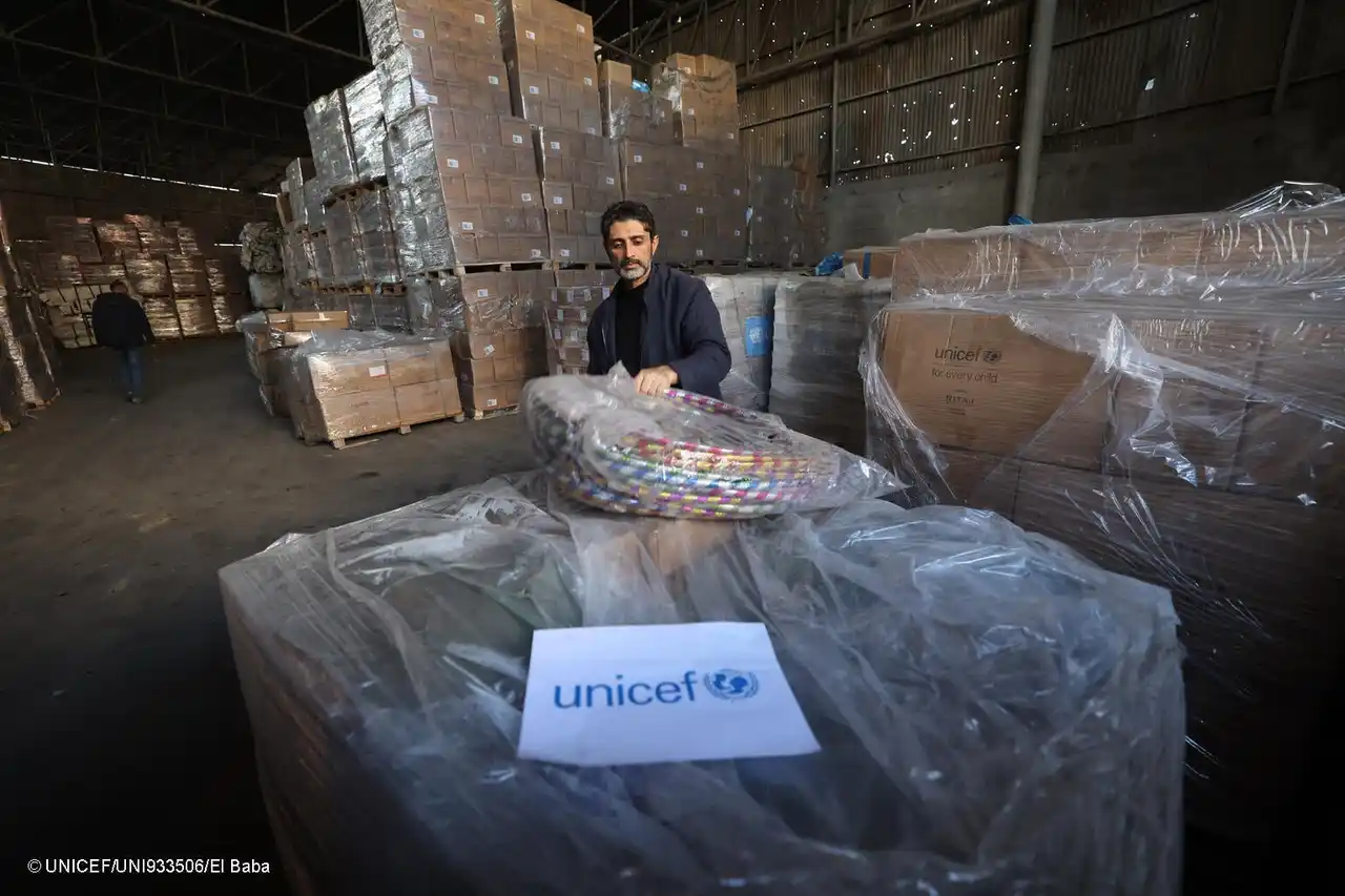 ガザの子どもたちへの支援のため、レクリエーションキットと乳幼児期の子どもの発達 (ECD)キットを準備するユニセフのスタッフ(パレスチナ、2026年1月22日撮影) (C) UNICEF/UNI933506/El Baba |