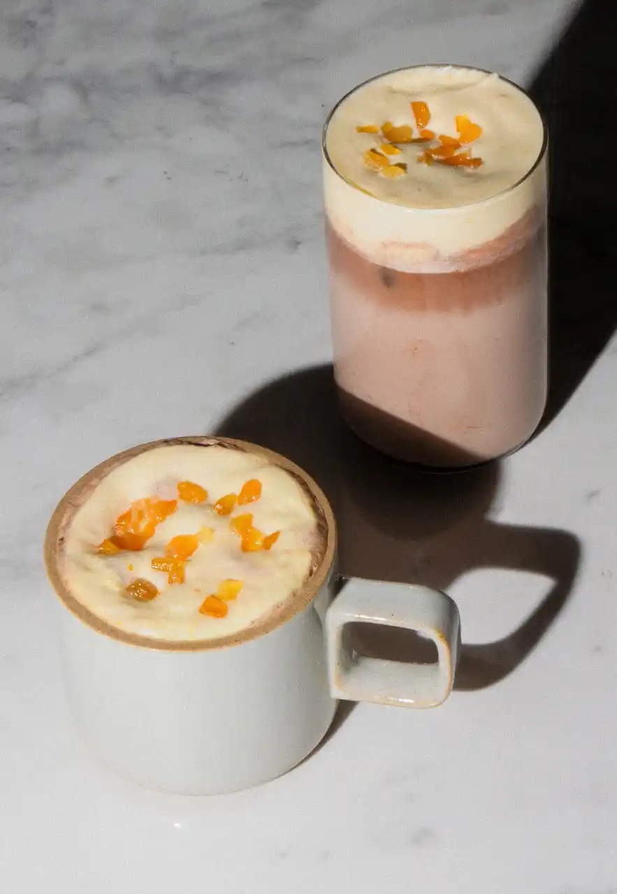 冬にぴったりな"オレンジチョコレート”。濃厚なチョコレートにフレッシュなオレンジの爽やかさを加え、仕上げにオレンジピールのほろ苦さと香りを添えました。口に運ぶたびに上品な甘さと柑橘の余韻がふんわりと広がる一杯です。 |