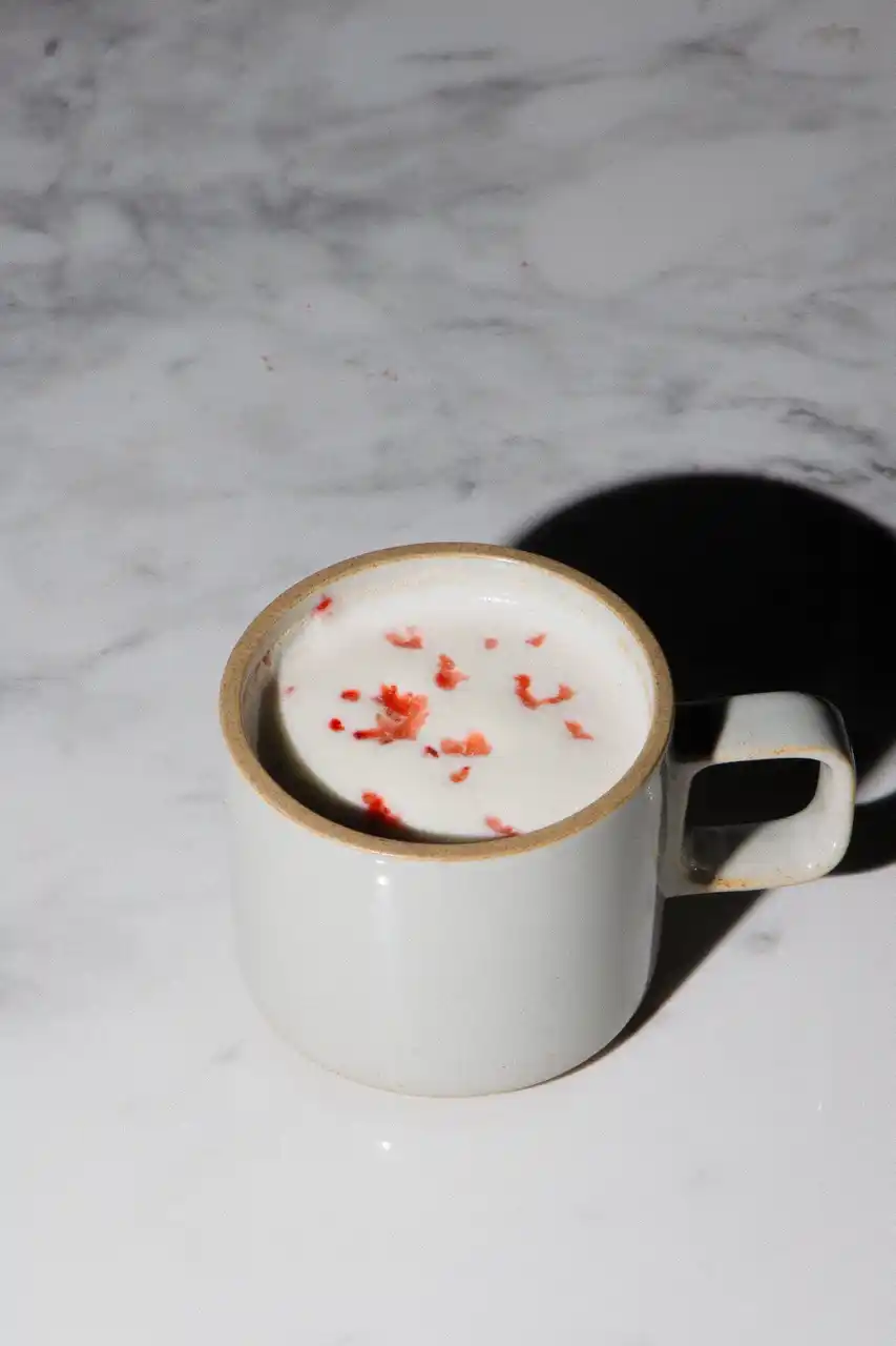 バニラの香りとまろやかな味わいが特徴のA.C.Perch's(A.C.パークス)のルイボスティーに、ストロベリーのフレッシュな甘酸っぱさを重ね、心地よい味わいが広がります。仕上げにクリームで全体をまろやかに仕立て、ストロベリーゼストをちりばめた上品な一杯です。見た目も愛らしく、ホッとするNOMU azabudai限定ドリンクです。 |