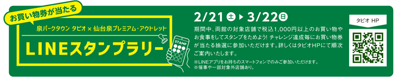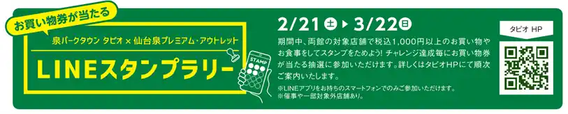 また、2月2日(月)には「MOMI&TOY'S/BAGEL & BAGEL」がリニューアルオープンするほか、2月21日(土)からは、仙台泉プレミアム・アウトレットと合同で「お買い物券が当たる!LINEスタンプラリー」も開催します。