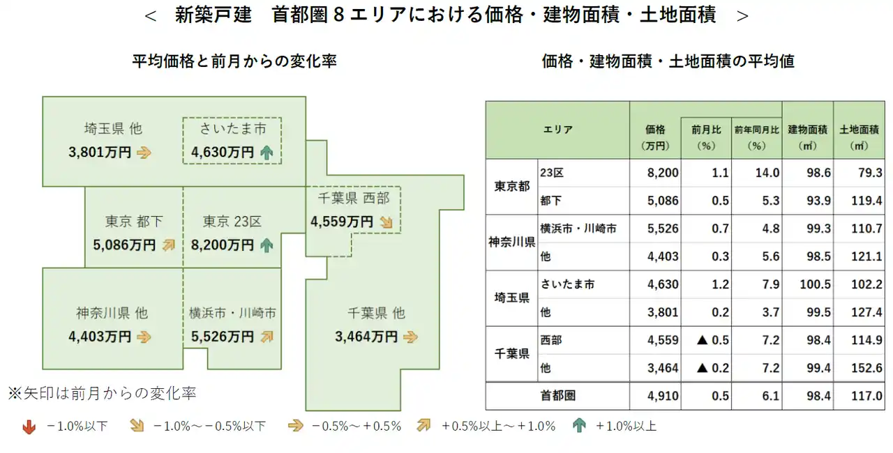 ●首都圏の新築戸建の平均価格は4,910万円で、前月比+0.5%と5カ月連続で上昇。前年同月比は+6.1%と16カ月連続で上昇。