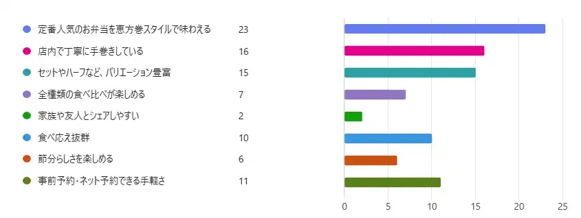 調査内容:『恵方巻シリーズ』のおすすめポイントを選択肢の中から2つ選択 |