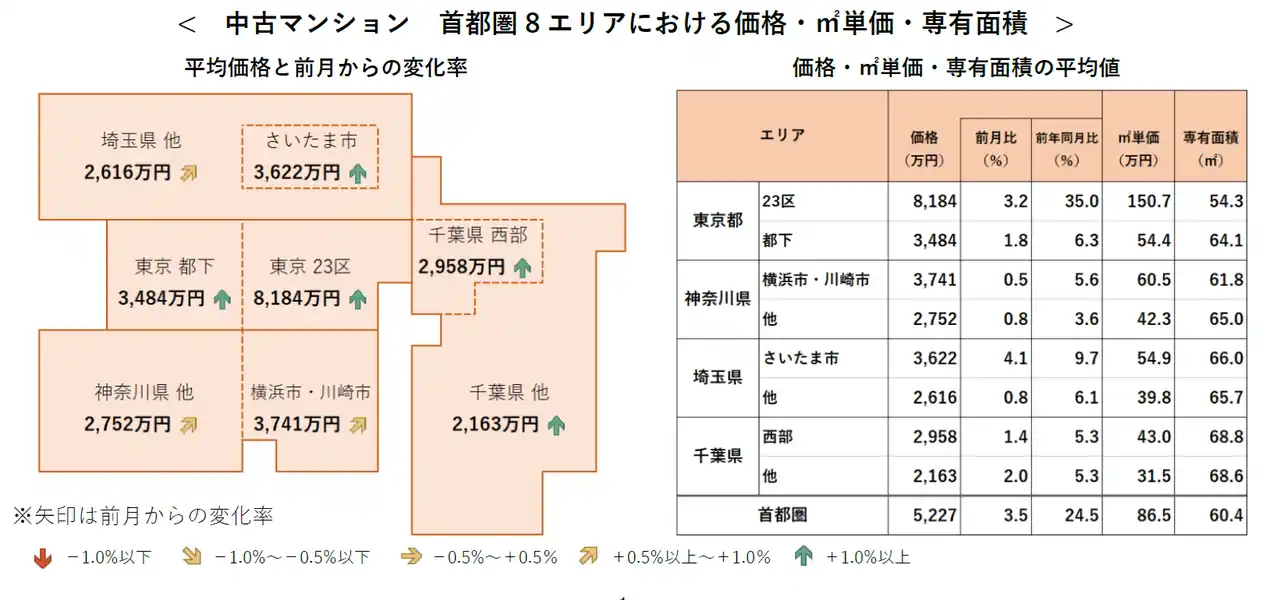 首都圏の中古マンション1戸あたり平均価格は5,227万円。前月比、前年同月比ともに17カ月連続で上昇。