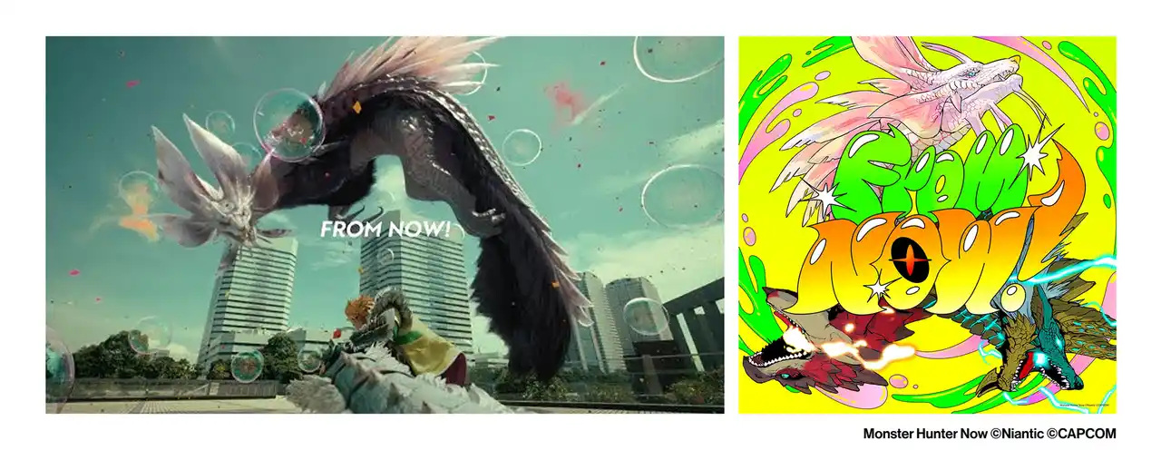 「From Now!」のショートバージョンは『Monster Hunter Now(モンスターハンターNow)』内で独占先行配信され、プレイヤーが特定の装備を入手することで視聴できる仕組みを構築した。 |