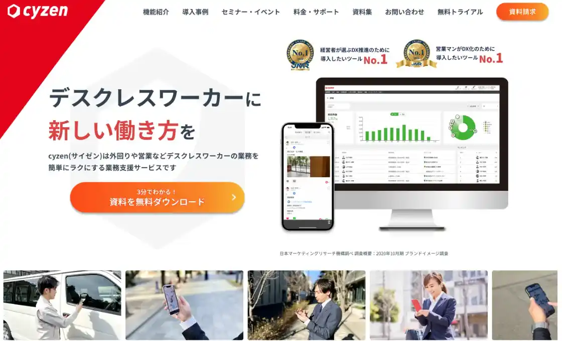 | 「cyzen(サイゼン)」は、訪問営業や外回り活動に特化し、現場での使いやすさを追求した営業支援システム(SFA)です。 | |||