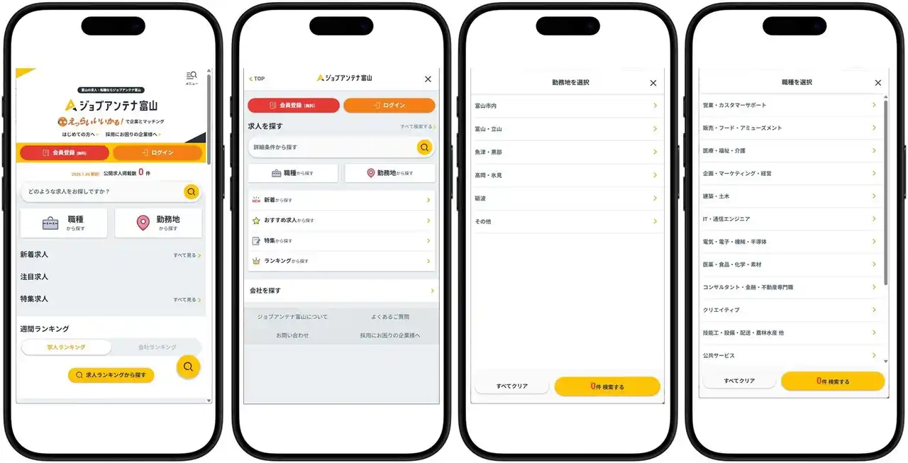 ■「ジョブアンテナ富山」の画面イメージ ※画像は開発中のものです |