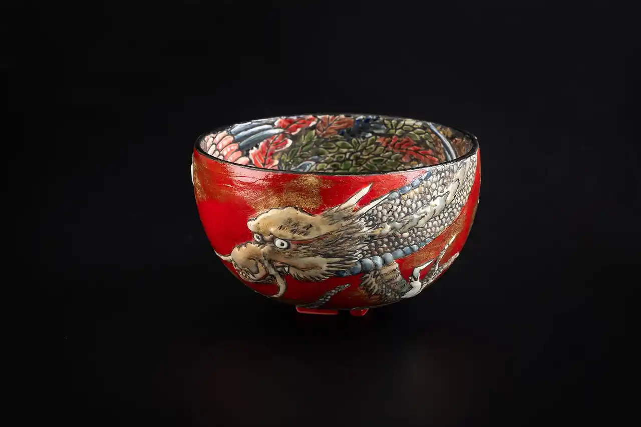 京焼職人の野原美恵氏は、大胆さを試みた造形の中に、北斎が得意とした極彩色を配色し、瑞獣の神々しさを立体的に表わしました。 |