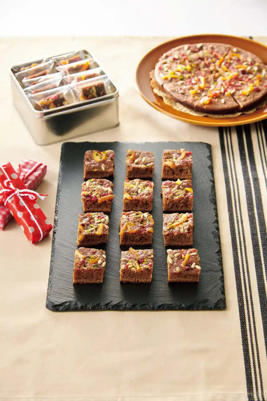 特長:ザクザク食感のヘーゼルナッツを混ぜ込みました。 |