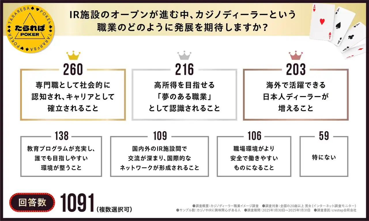 最後に、カジノディーラーという職業の発展性について(複数回答で)聞きました。 |