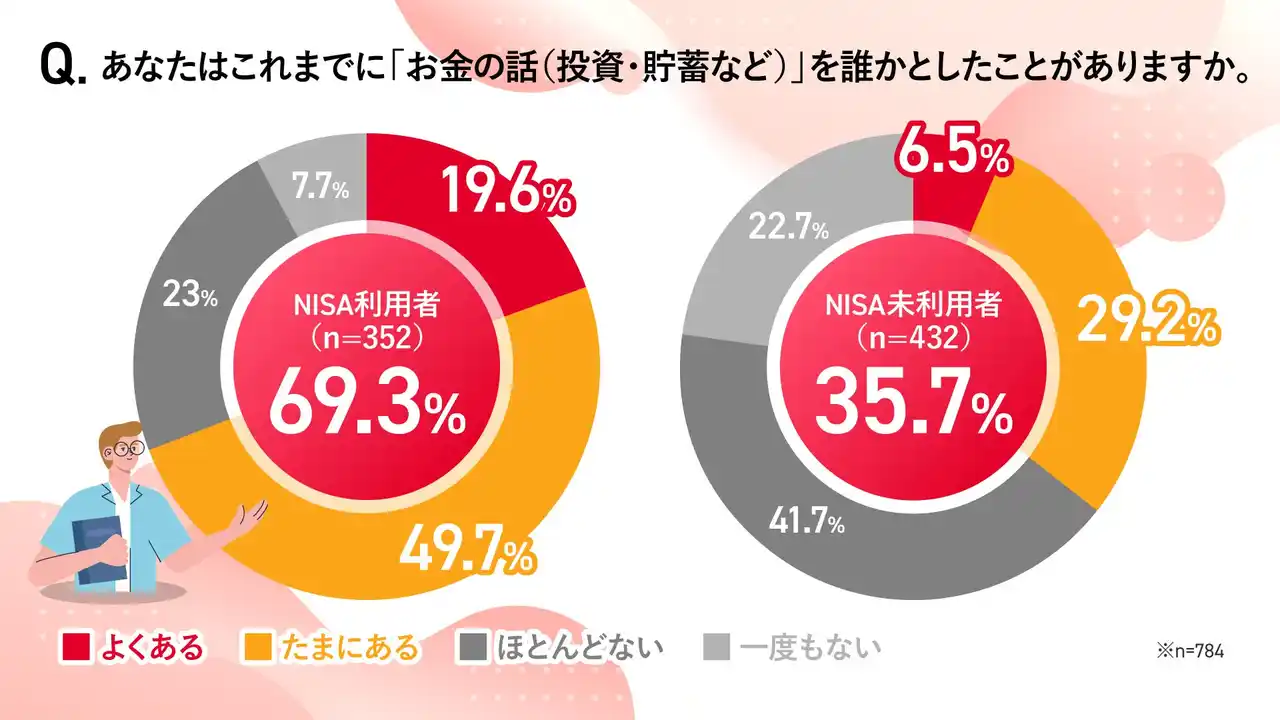 お金の話を気兼ねなくできる人ほどNISA利用率が高く、NISA利用者の約5割(45.7%)が第 |