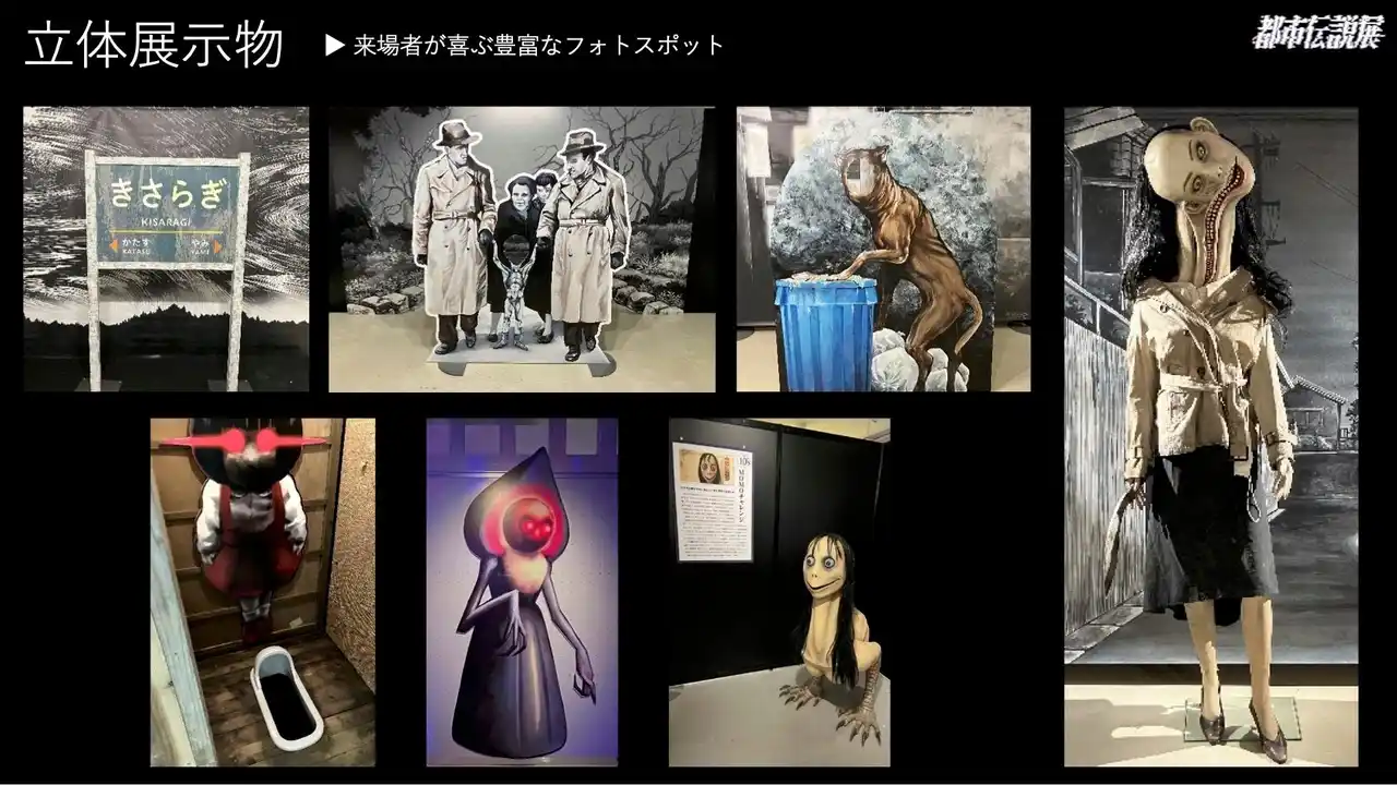 展示内容:パネル展示、立体展示物、心霊写真、呪物コーナー、フォトスポット、物販コーナーなど |