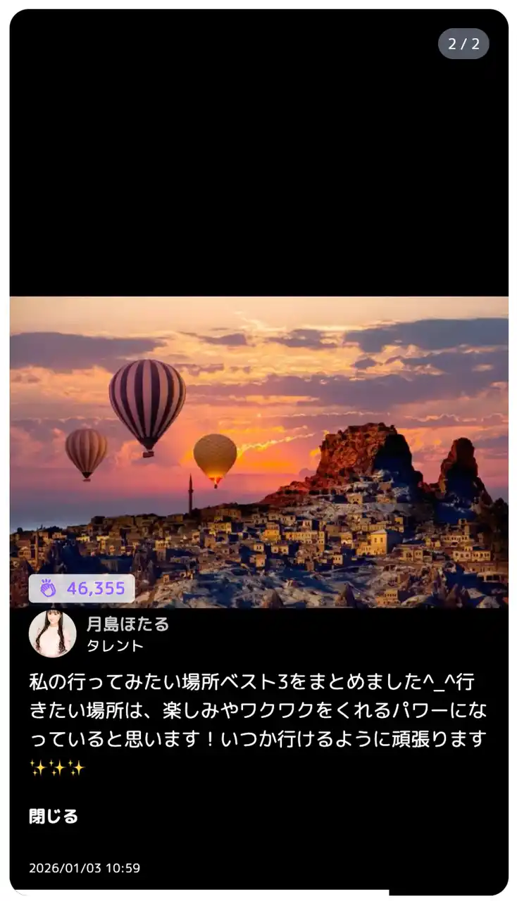 カラフルキャスティング株式会社(本社:東京都渋谷区、代表取締役:松本豊季)が運営する、誰でも無料で登録できる「プロフィール」を軸に、企業と個人、個人とファンを繋ぐエンタメアプリ「カラキャス」は、2026年1月1日から1月15日の期間中に開催した「#カラキャスギャラ祭り~第1弾~」の開催結果をお知らせいたします。 |