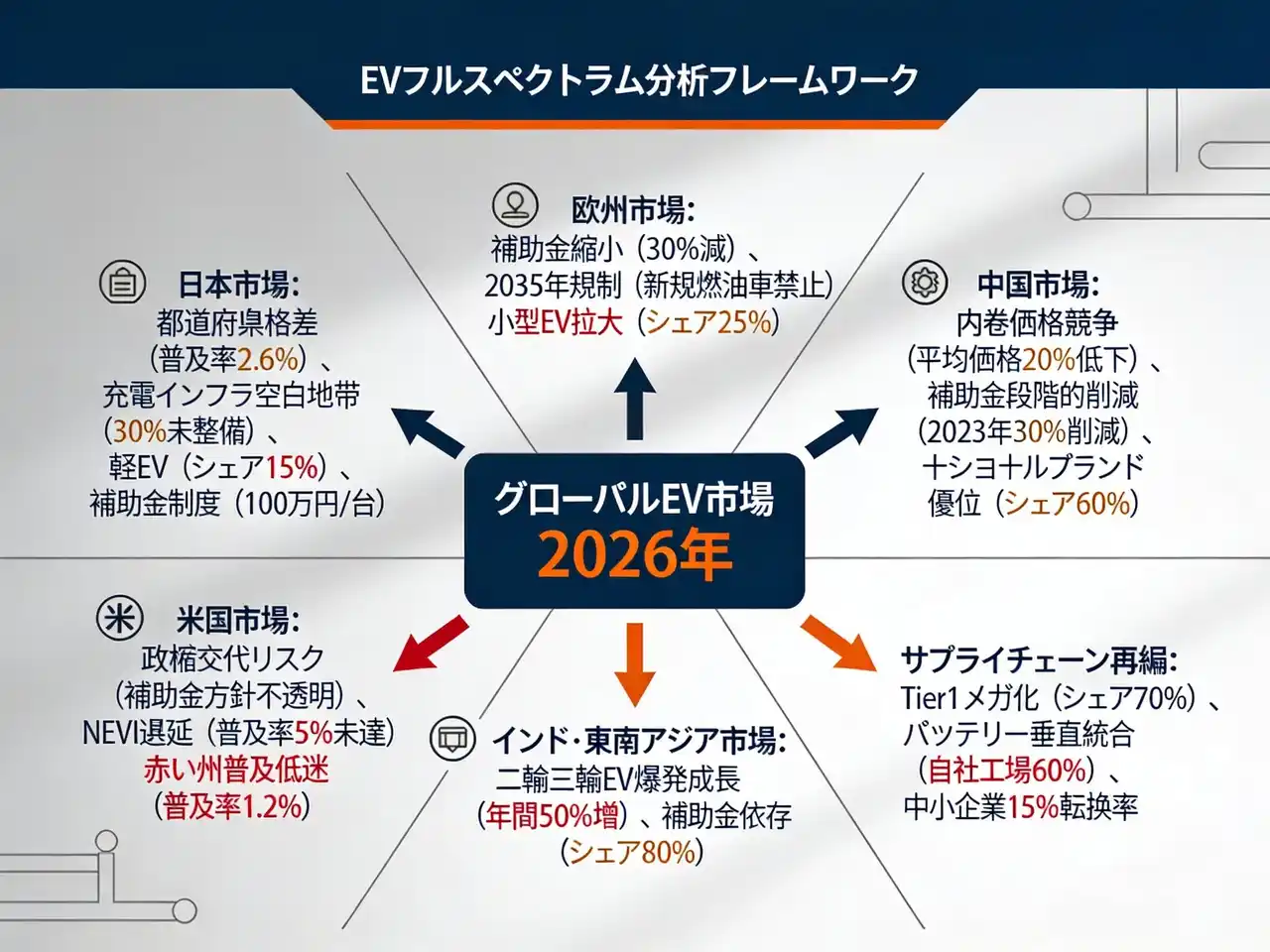 グローバルEV市場は、単なる「電動化」から「多層化・地域化・再構造化」への決定的な転機を迎えています。 |