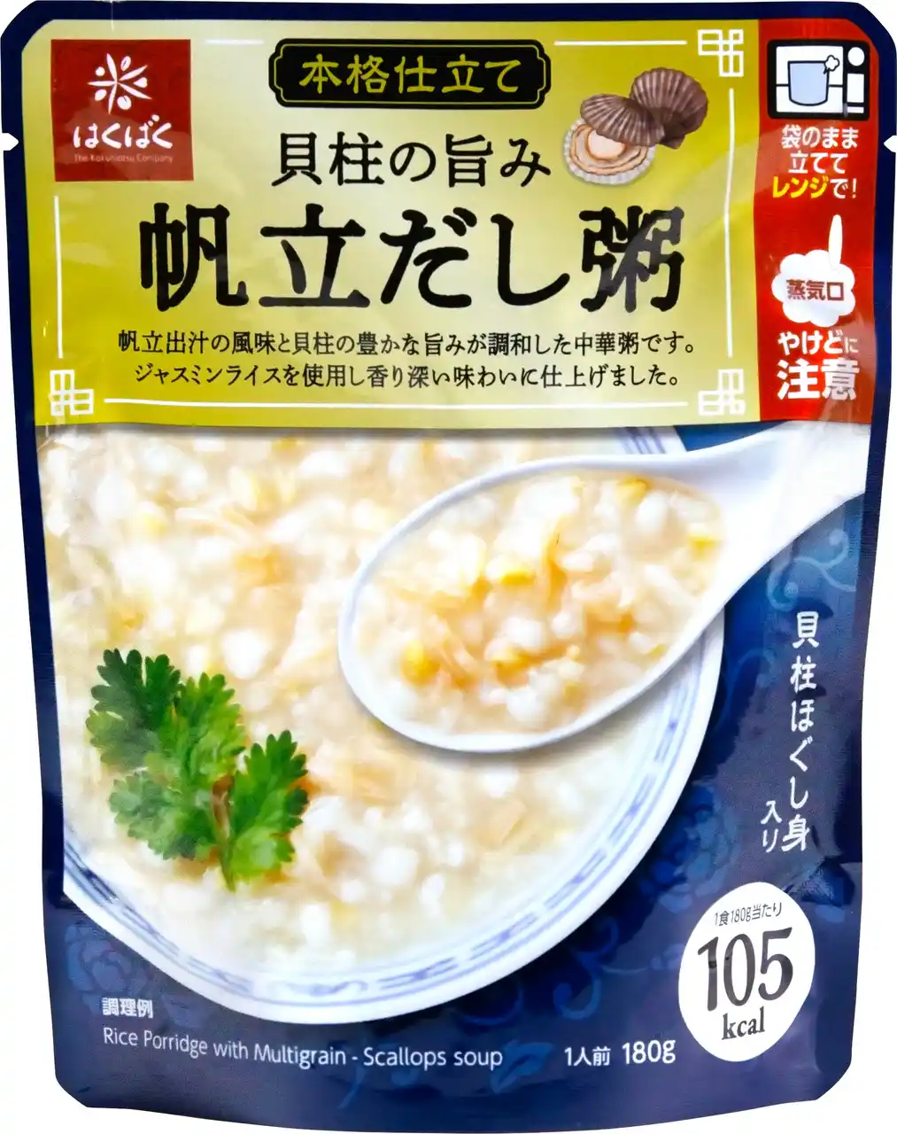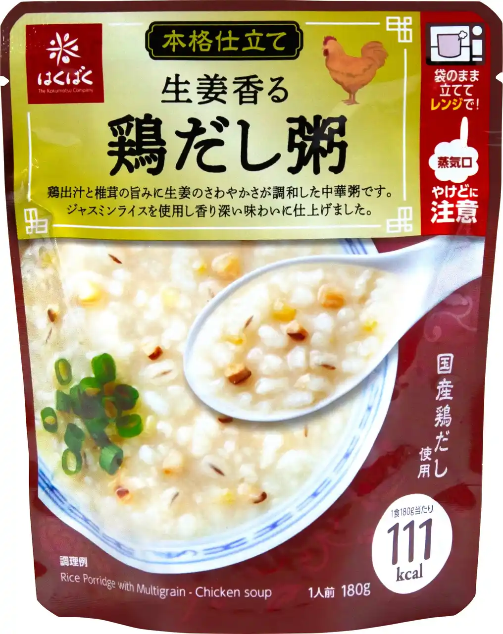 | 「グルメなおかゆシリーズ」第三弾は、だしにこだわったやさしい味わいの本格中華おかゆ。国産鶏出汁と椎茸の旨みに生姜のさわやかさが調和したやさしい味わいの「鶏だし味」と帆立出汁と貝柱の豊かな旨みを閉じ込めたシンプルながら贅沢な「帆立だし味」の2種類展開です。素材の旨みを最大限に引き出し、本場中国でも朝の定番として愛されている「朝粥」にもぴったりな本格的かつやさしい味わいに仕上がっております。 | ||||||||||||||