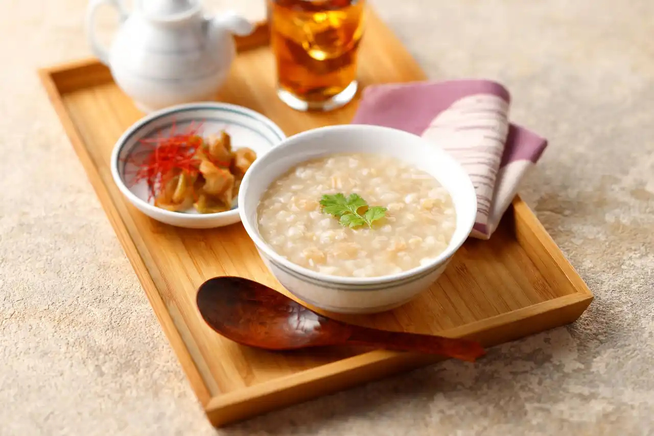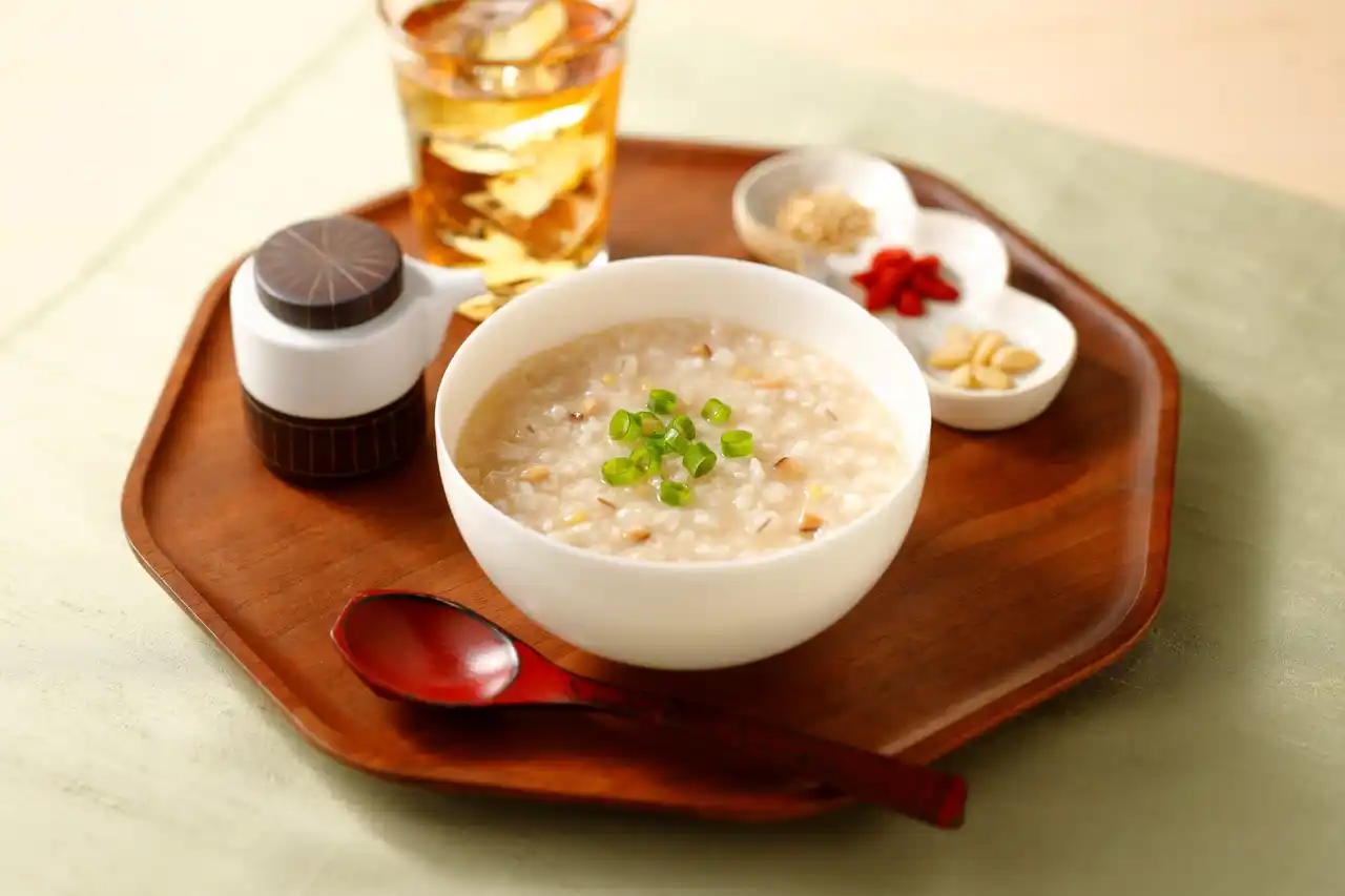 | 本格的なだしと素材の旨みや食感のバランスを追求し、満足感がありながらも朝食にぴったりなやさしい味わいに仕上げました。ジャスミンライスを使用し、香り深い味わいを楽しめる中華粥です。 | ||||||||||||||