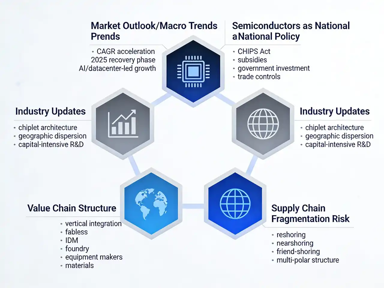 本白書は、2024年の調整局面を経て2025年に復調する半導体市場が、いかなる構造的変化をもたらすのかを、マクロ経済・政策・産業バリューチェーン・サプライチェーンの4つの視点から統合的に分析しています。 |