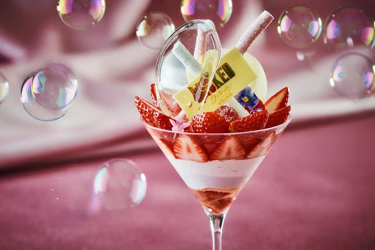 アメ細工で作ったバブルの中に、グリンダのかわいらしさを表現したピンク色のアイスクリームとイチゴを閉じ込め、明るく華やかなパフェに仕上げました。 |