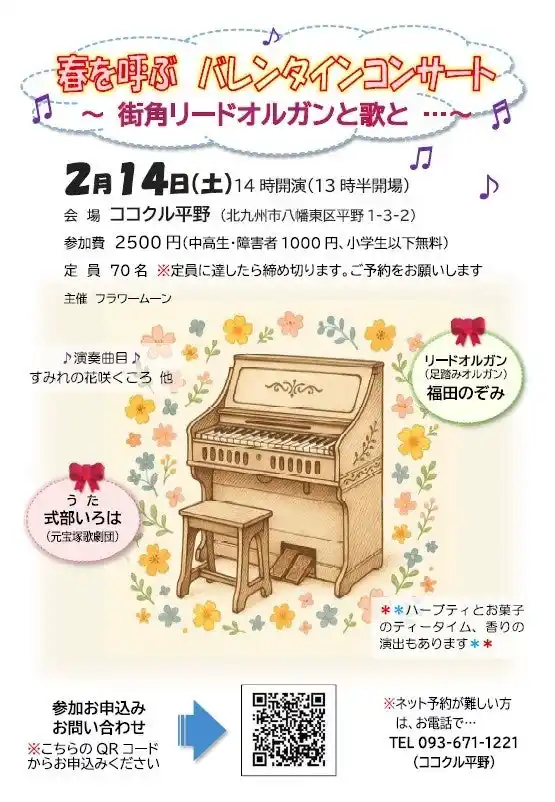 「春を呼ぶ バレンタインコンサート~街角リードオルガンと歌と。。~」 の開催