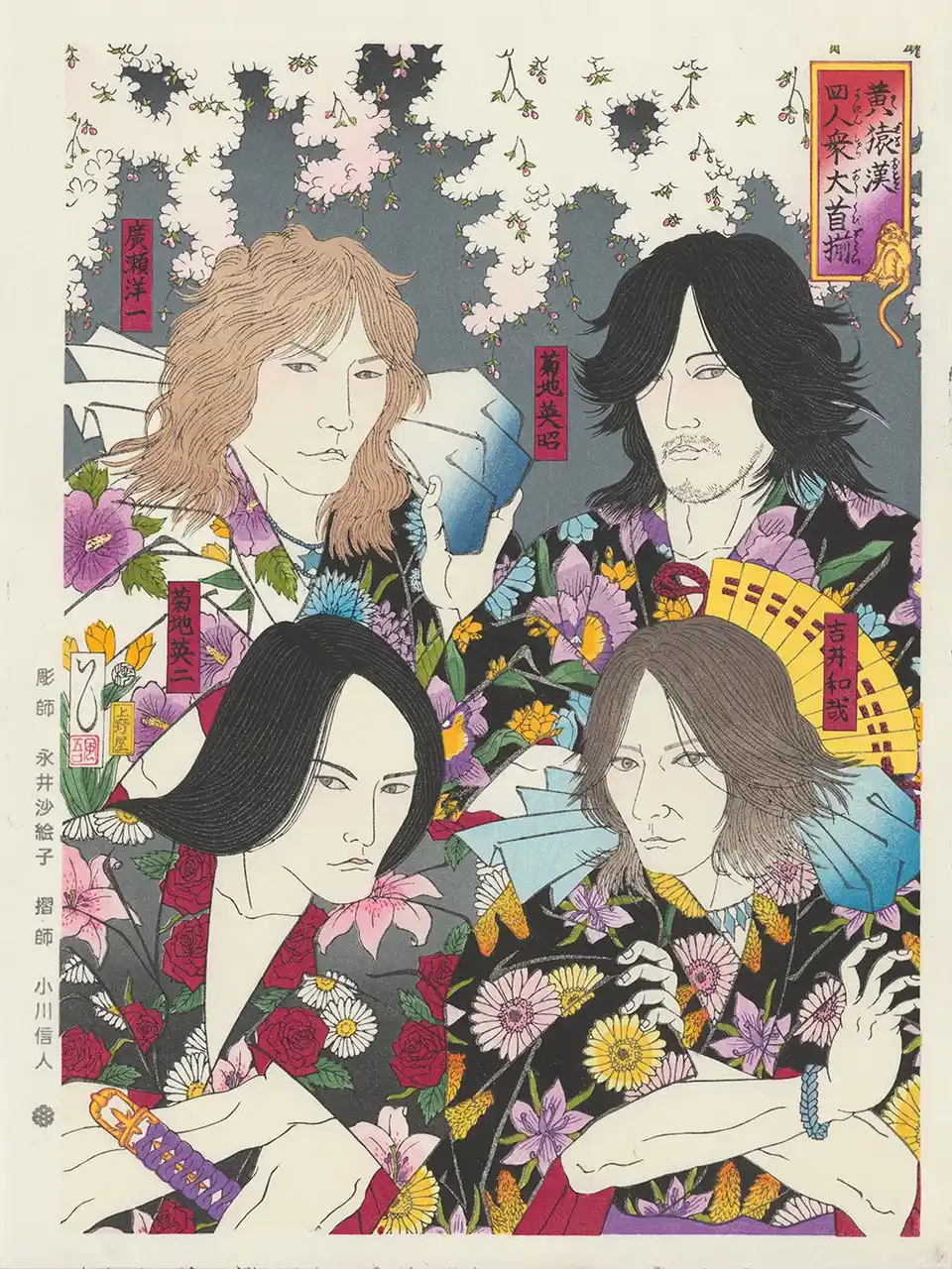 | 本取り組みの第一弾として、THE YELLOW MONKEY 結成35周年を記念した浮世絵作品「黄猿漢四人衆大首揃」(きざるおとこよにんしゅうおおくびぞろい)を、2026年1月28日(水)より、限定100点(うちFanpla Marketにおけるトークン販売は限定20点)の抽選販売にて受付開始いたしました。 | ||||||||||||||||