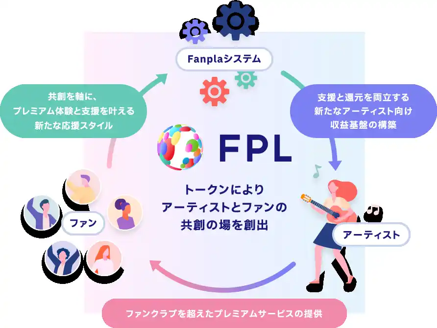 | 「Fanplaプロジェクト」は、Web3.0技術を用いてファンダムの熱量を可視化し、アーティストの創作活動をファンと共に支える新しい経済圏の創出を目指しています。その中核を担うのが、多機能トークン「Fanpla(FPL)」です。 | ||||||||||||||||