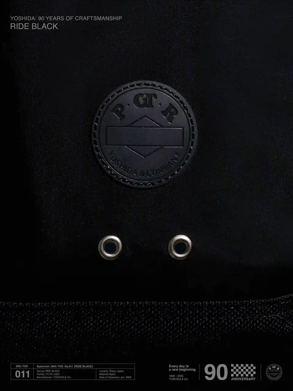 吉田カバン創業90周年を記念し、POTRブランドの人気シリーズRIDEより限定カラー「BLACK」を、2026年1月30日(金)、国内外の厳選された店舗にて、完全数量限定で発売します。 |