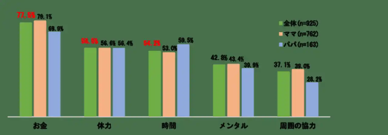 住友生命保険相互会社(取締役 代表執行役社長 高田 幸徳、以下「住友生命」)と妊娠・子育て・健康管理を中心に家族のライフイベントに寄り添うサービスを展開する株式会社カラダノート(代表取締役 佐藤 竜也、以下「カラダノート」)は、厚生労働省「共育(トモイク)プロジェクト(https://tomoiku.mhlw.go.jp/)」が推進する、社会全体で子育てを支え合う「共育(トモイク)」の浸透と、子育て期のウェルビーイング向上に向けた取組みの第一弾として、カラダノート会員である全国のママ・パパ925名を対象にアンケート調査を実施しました。 |