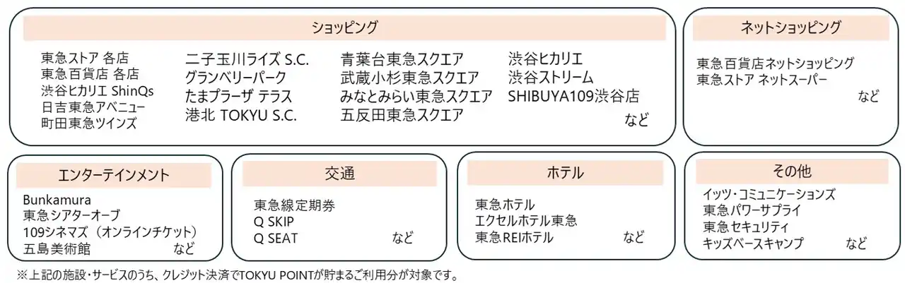 ※TOKYU POINT加盟店のうち、当社および連結子会社の運営する施設・サービスが対象です。対象店舗、サービスなど詳細については追って発表します。 |