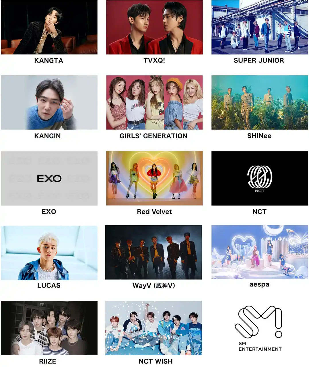 | EXO / Red Velvet / NCT / LUCAS / WayV (威神V) / aespa / RIIZE / NCT WISH | |||