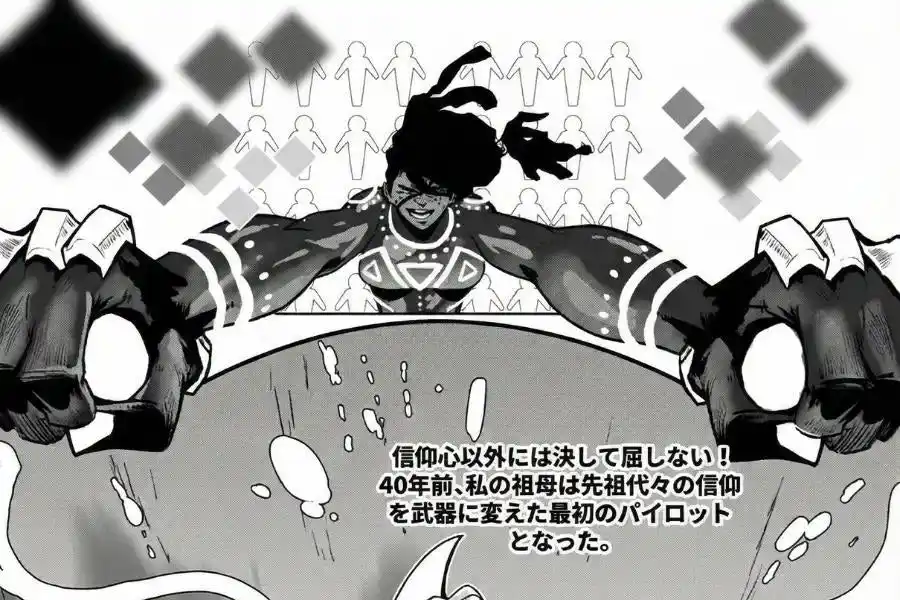 作品:『Beanstalkking!! - Faith is a weapon! -』 ジンバブエ神話の魚蛇神「ニャミニャミ」が巨大メカとして登場。「信仰(FAITH)」をエネルギー源とする世界で、信仰を持たない少年が戦うSFアクションです。 |
