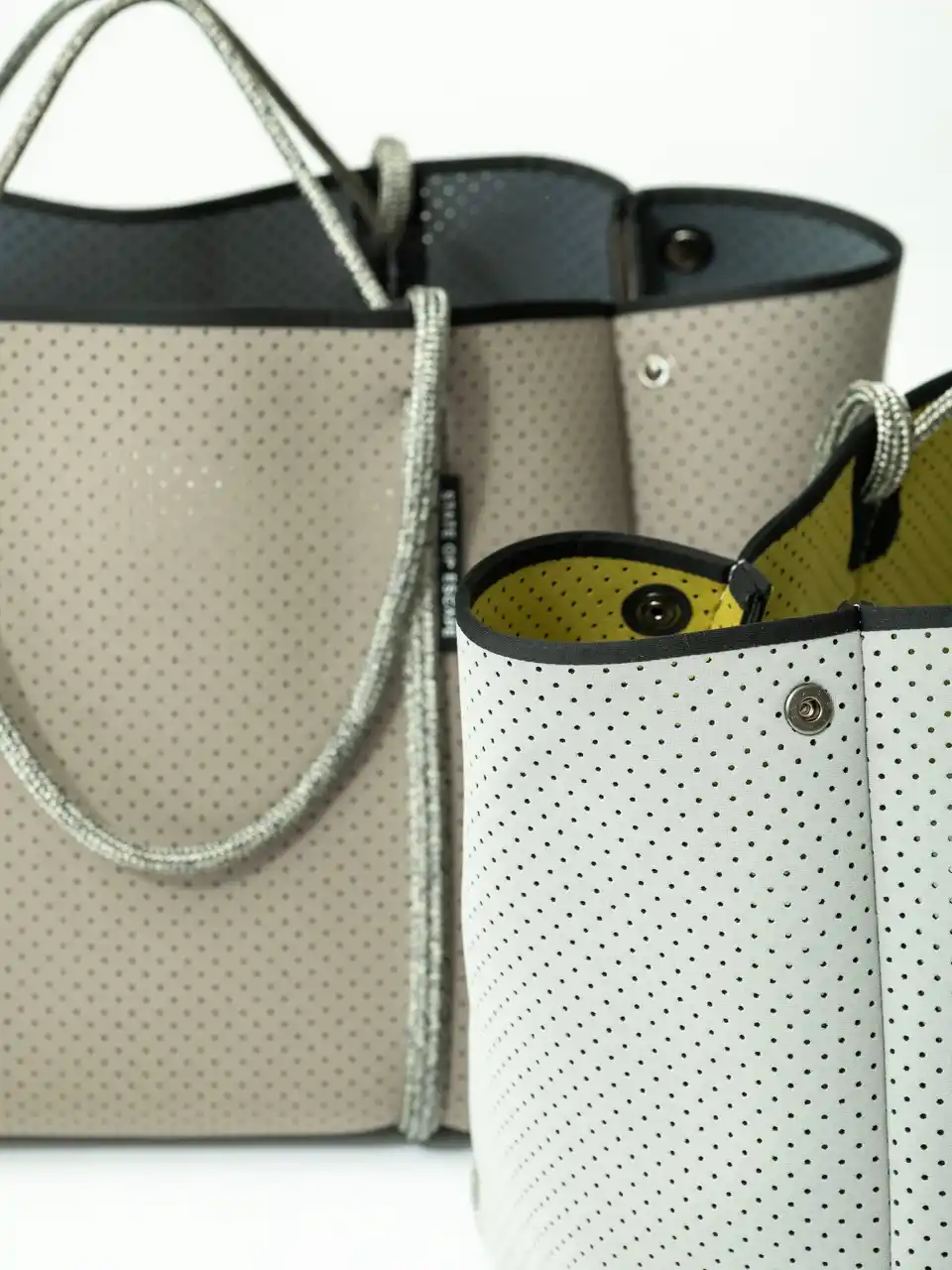 Brigitte MacGowanとDesley Maidmentがオーストラリアのシドニーで始めたハンドメイドバッグブランド。“ユニークかつエッジーで、美しくデザイン性のあるキャリーオールを作る”というコンセプトのもと、色鮮やかで印象的なバッグを展開している。軽量で柔らかく肌当たりのよいネオプレン素材のボディに、ショルダーとしてセーリングロープを使用した全てのコレクションは、超軽量でありながら頑丈で、コンパクトに畳め、水洗いが出来る使いやすさも兼ね備える。2024年にB Corp認証を取得。環境や社会への配慮を含めた、責任あるものづくりを実践しています。 |
