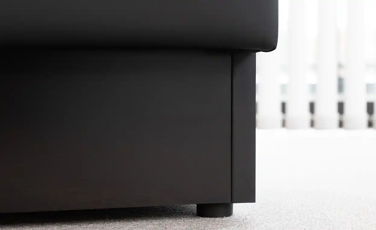 業務用ソファーでは、価格を抑えることを優先すると、素材や仕上げが簡素になりがちです。WDN オールラウンドソファは、この常識を見直し、低価格・短納期でありながらも、品質面で妥協せず、長く使える業務用家具を提供することを開発の軸としました。張地には、一般レザーよりワンランク上のソフトレザーを採用し、業務用として求められる耐久性と上質な質感を両立しています。さらに、背面までレザー張りを施すことで、シーンを選ばず使えるオールラウンドなソファーを目指しました。 |