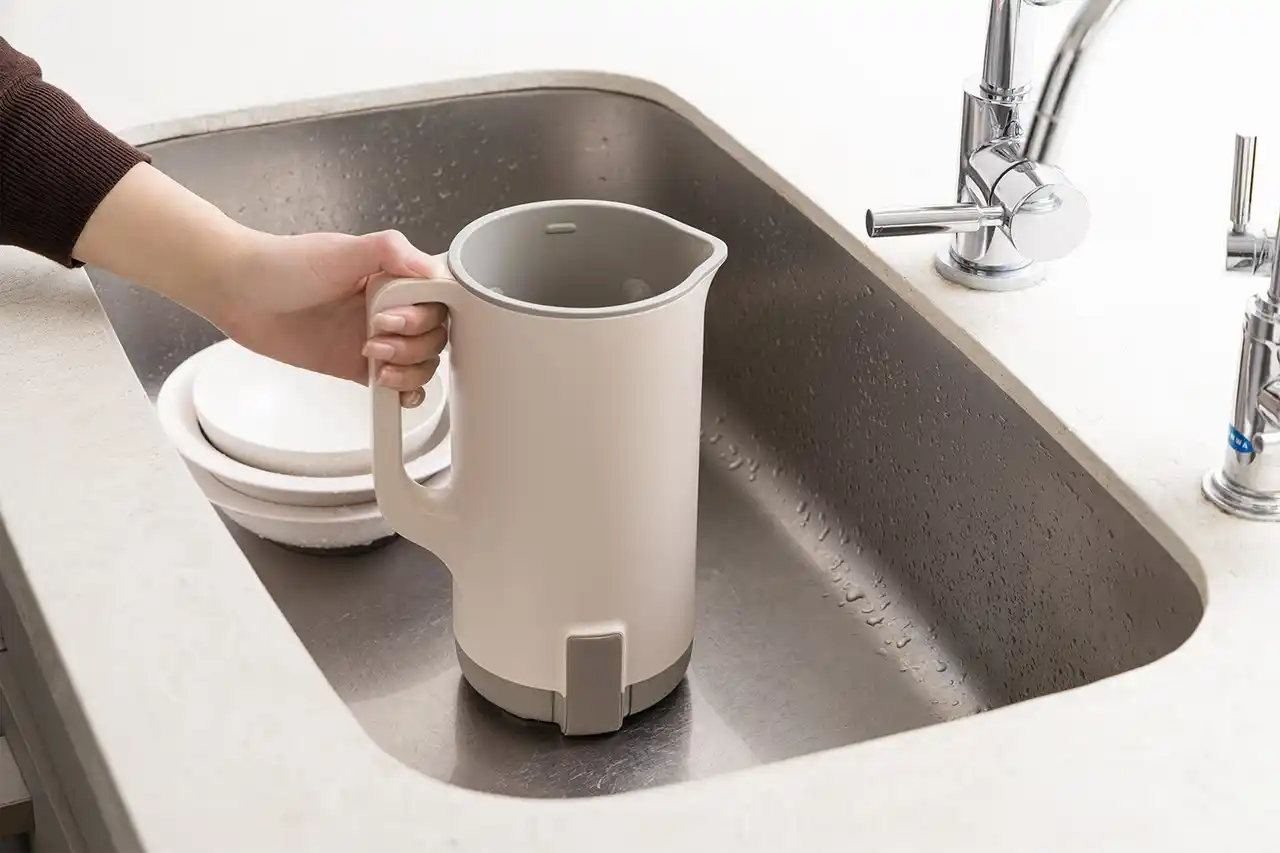 水が入りにくいスマートベンチレーション構造を採用し、プラグ挿入口カバーを確実に閉じた状態でIPX4相当の生活防水性能を備えました。加えて、内側には汚れや焦げが付きにくい2層仕上げのセラミックコーティングを、8枚刃ブレードにはチタンコーティングを施すことで、お手入れのしやすさも向上。また、吹きこぼれ防止パーツや空焚き防止機能を内蔵することで、さらに安全性にも配慮しました。「豆乳モード」「おかゆモード」には1~12時間まで設定可能な予約機能を備え、朝食のタイミングに合わせて、できたての豆乳やあたたかなおかゆを楽しむことができます。 |