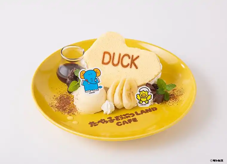 DUCKのビスケットをイメージしたふわふわのスポンジにバナナやカスタードクリームを挟み、チョコレートソースを添えた東京限定のスイーツ! |