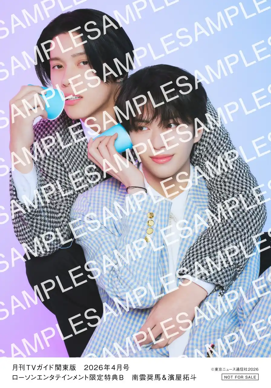 | なお、ローソンエンタテインメント(※WEBのみ)で「月刊TVガイド2026年4月号」の関東版を購入すると、南雲&濱屋2ショット生写真が全3種類のうちランダムで1枚付いてくる。“しょまたく”のここでしか手に入らない生写真を、ぜひチェック&ゲットしていただきたい。 | ||||||||||||||
