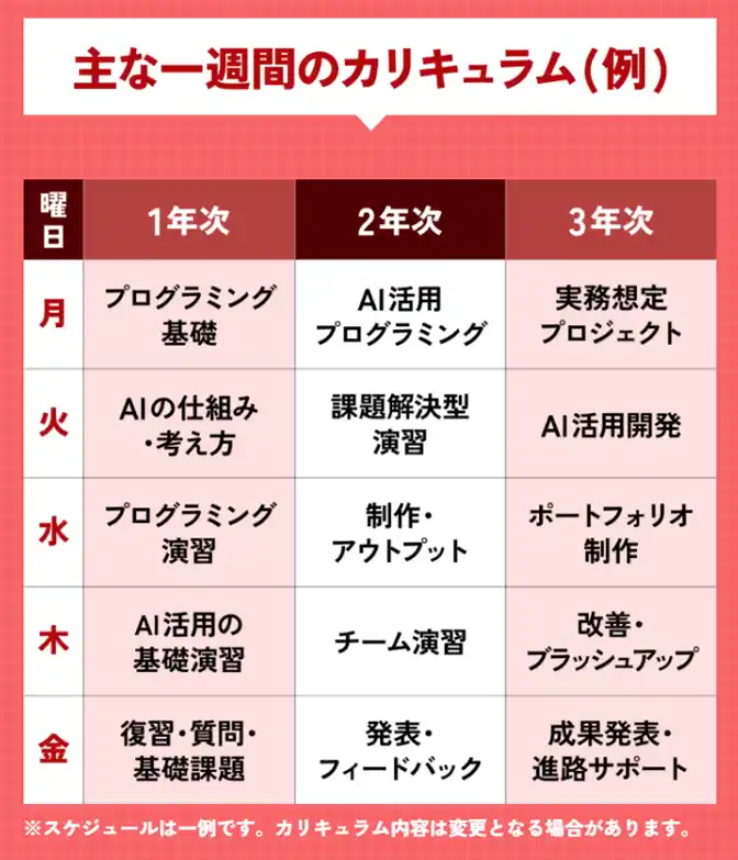 AIプログラミングカレッジ:スケジュール例 |