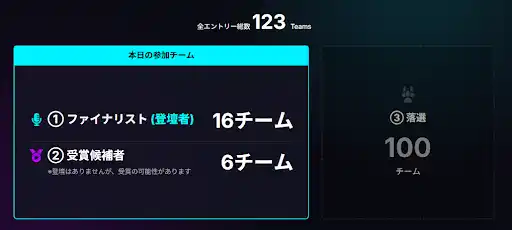 結果として、123件のエントリーが集まり、ファイナルピッチには選抜された16チームが登壇。物流の待機時間問題、一次産業のキャッシュフロー改善、AIエージェントによる自律決済など、社会実装を見据えた具体的なソリューションが多数発表されました。 |