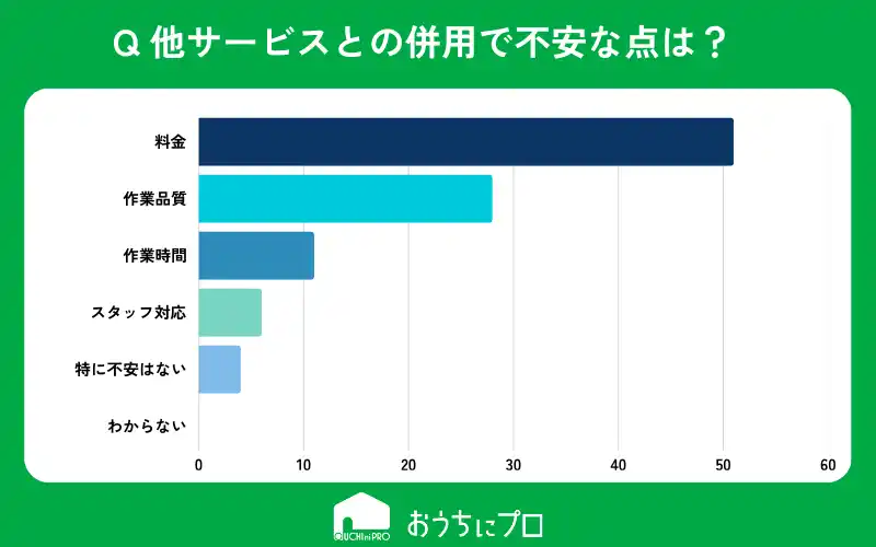 他サービスとの併用についてユーザーが最も気にしているのは料金面。 |
