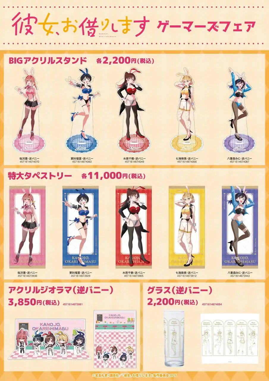 開催内容:『彼女、お借りします』新規描きおろし逆バニー絵柄グッズと関連商品の販売 |