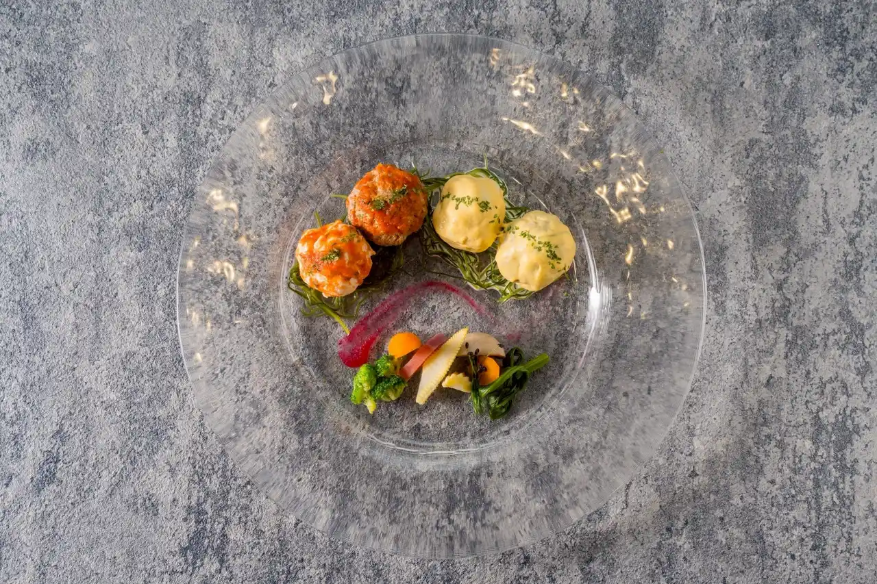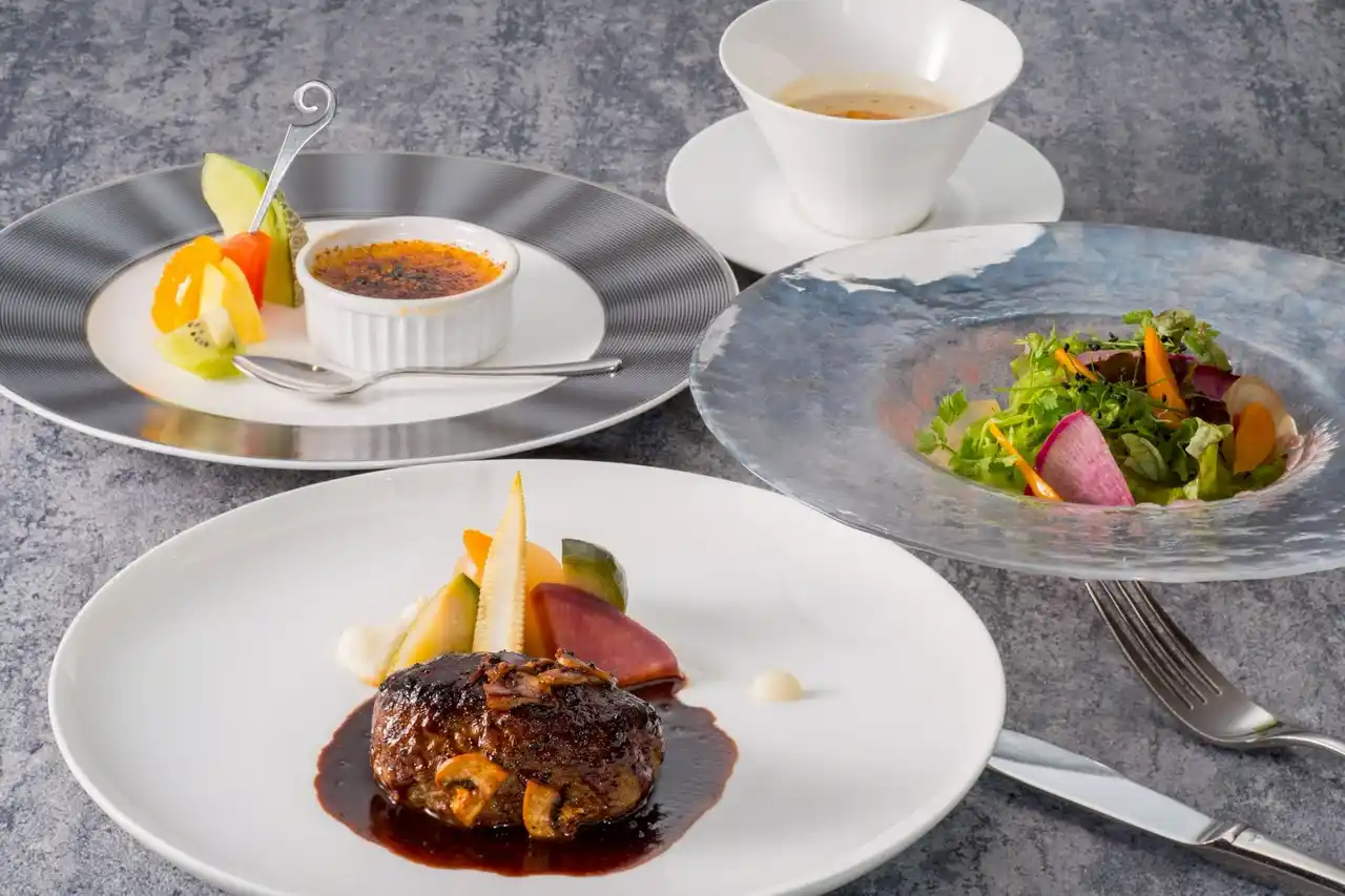 前菜、魚料理、肉料理、デザートなどシェフのこだわりを堪能できる贅沢なコース。 |