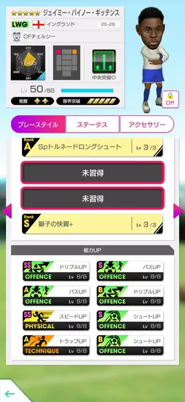 さらに、難易度「ベリーハード」の各ステージでは、選手の能力をアップさせるアクセサリーが入手できます。最終ステージでは「赤薔薇」の虹アクセサリーが登場するほか、過去に登場したワールドツアー限定の虹アクセサリー「トリコロール」「獅子紋」も再登場します。 |