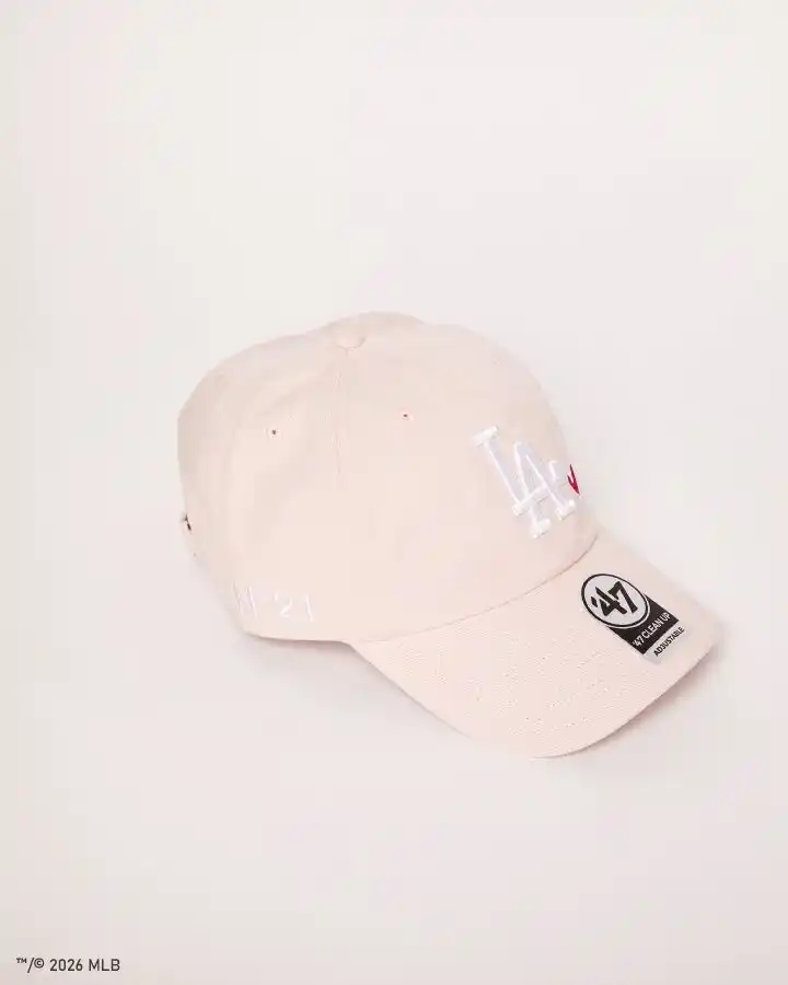 キャップブランド「’47」とMLBとのトリプルコラボでは、伊勢丹新宿店先行アイテムとして、ピンクカラーのロサンゼルス・ドジャースのキャップが登場。 |