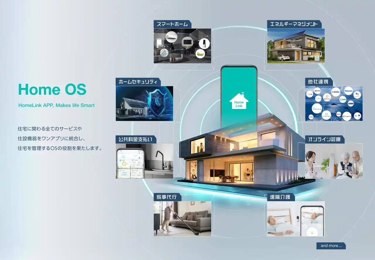リンクジャパンは今後も、HomeLinkを住まいの共通基盤(Home OS)として位置づけ、エネルギー関連機器をはじめとしたさまざまな住宅設備やサービスとの連携を順次拡大していく予定です。 |