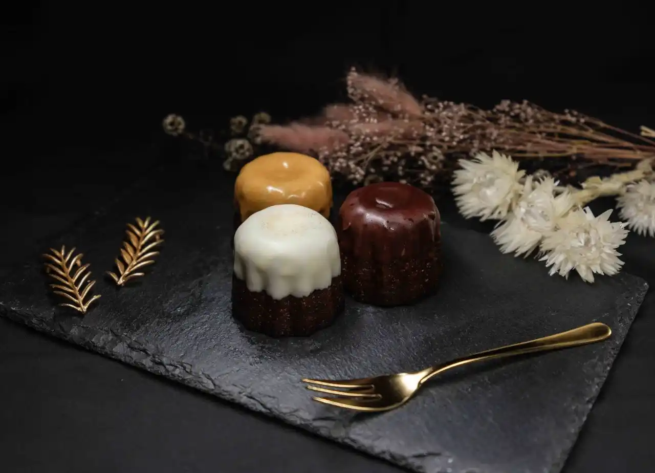 | もっちり感を追求した大ぶりのカヌレのトップに、カヌレに合う厳選した3種のフレーバーのチョコレートをコーティング。スイートチョコ、ホワイトチョコ、キャラメルチョコそれぞれのチョコレートとカヌレの絶妙な味のコントラスト、カヌレのもっちり食感をお楽しみいただけます。 | |||