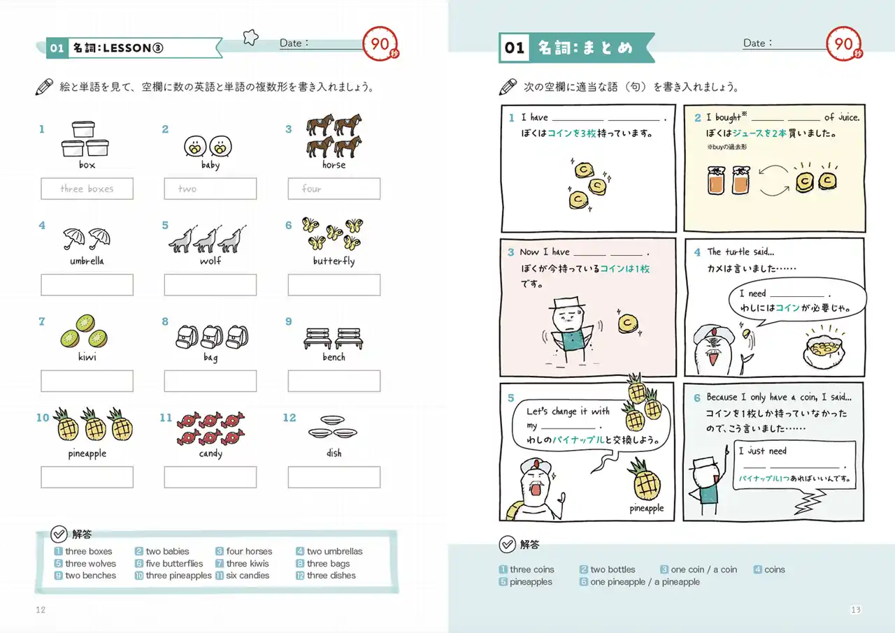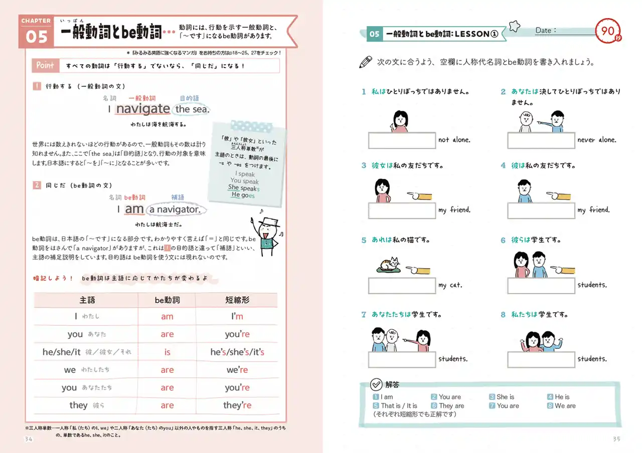 本書は、続々重版で4万部を突破した『ゼロからわかる! みるみる英語に強くなるマンガ』で読んだ内容をしっかり身につけられるドリルです。短い時間で、気軽に続けられることをポイントにしてつくりました。 |
