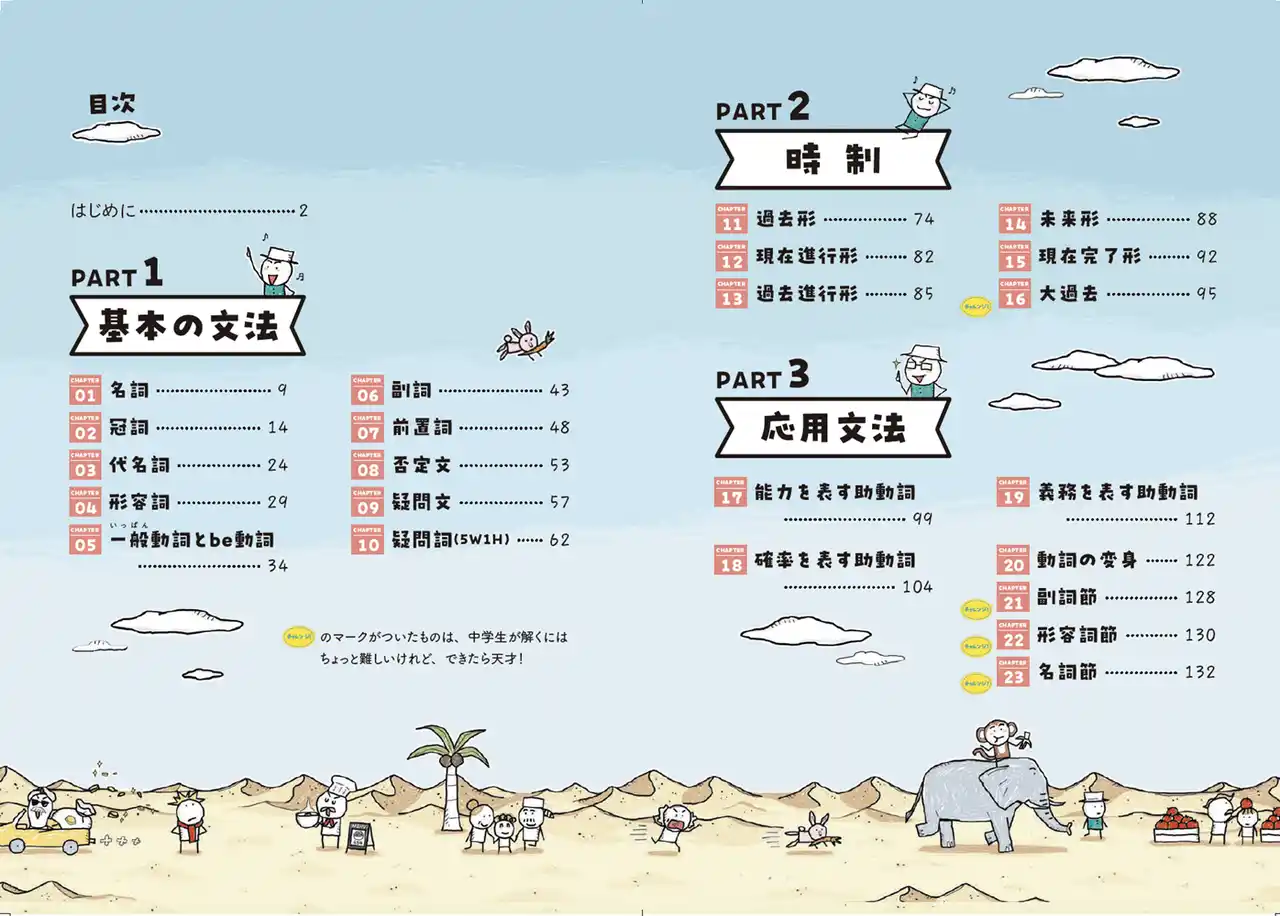 本書は、中学校で習う23の文法を中心に、基礎文法・時制・応用文法の3つのパートで学ぶ、韓国発の英語ドリルです。特に重視したのは、「英語を難しく感じさせない」こと。英語学習では、説明が多すぎたり問題量が多すぎたりすると、学習ペースが落ち、つまずきの原因になりがちです。 |